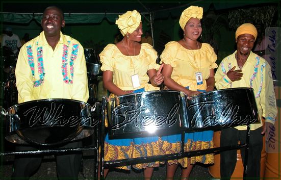 Members of Jamaica's Carifesta contingent take their turn behind the steelpans