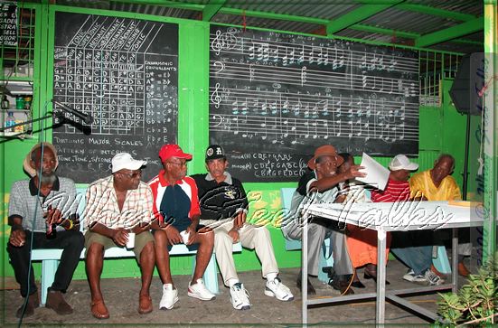Pan Elders during the history discourse at Renegades pan yard