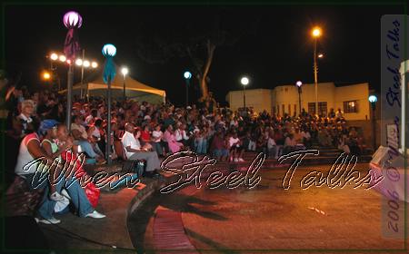 Crowd seated in amphitheater