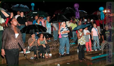 Crowd in the rain - complete with umbrellas