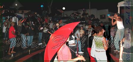 Crowd dancing - and signing - in the rain at the amphitheater in